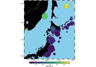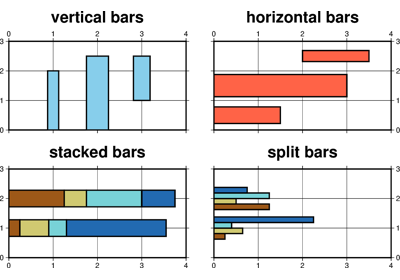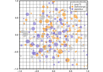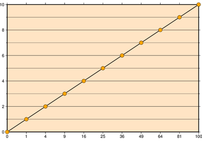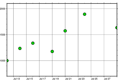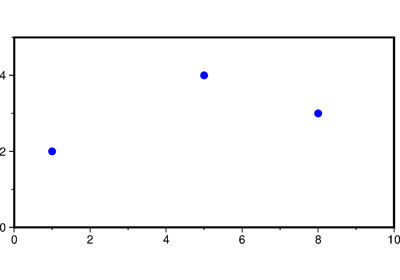 x/y,fillcan be a 1-D array that will be mapped to a colormap.If a symbol is selected and no symbol size given, then plot will interpret the third column of the input data as symbol size. Symbols whose size is <= 0 are skipped. If no symbols are specified then the symbol code (see